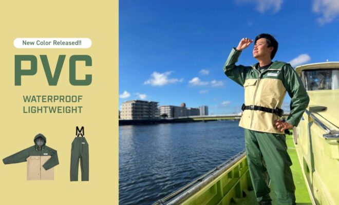 軽さ、デザイン性、機能性にこだわった SHIPSMAST.U の PVC 釣りウエアにナチュラルカラーの“カーキ× ベージュ”が新登場!「今までとちょっと違う」と周りに思わせる、シンプルだけど個性のある、これまでの釣りウエアにはないカラーリングが完成しました。