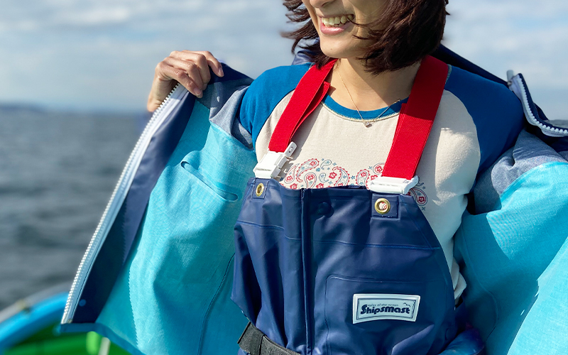 ウエア&グッズ選びのコツ伝授 ”冬の沖釣り編”2020年11月13日tsuribana特集コンテンツ そろそろ釣り歴30年!Shipsmast プロデューサーの釣り好き社長・金子マミです。 11月に入り関東も朝晩は冷え込むようになってきました。もう寒いから釣りはあきらめて家にこもろう・・・と思っているあなた!海で釣って食べる派の人には冬こそ釣りのべストシーズンです!寒さに負けず快適に冬の船釣りを楽しむコツをお伝えします☆ 冬の船釣りコーディネートテクニック 冬の船釣りウエアを選ぶ時に押さえて欲しいキーワードは3つです。 防水性 保温性 ゆとり 防水性について シーズン問わず、船釣りで身に着けるアイテムのキーワード第一位は「防水性」です。どれだけ良質なダウンジャケットやフカフカの防寒着を着ていても、これが濡れてしまえば保温性も防寒性も失います。濡れた状態で風にあたると熱がドンドン奪われていきます。大事なのはとにかく水に濡れない&濡らさない事です!可能な限り防水性能の高いウエア、晴れた日なら最低でも「撥水性」の高い生地のものを選んください。 豪雨でも滲みない完全防水素材(PVC)を使用したマリンウエアは汚れにも強いので船釣りに最適! 透湿防水素材GEOVISO®を使用したShipsmast フィッシングジャケット&パンツは海水を被る状況&本降りの雨も安心。他の一般的な透湿防水ウエア同様に撥水性&防水性をキープするには使用後のお手入れが重要です。 保温性について ダウンや綿入りのジャケット&パンツは間違いなく保温性が高いです。そういったジャケット&パンツの外側生地に①の防水性が加われば完璧です!ただし、そういったウエアは濡れたり汚れたりした時のお手入れが大事。軽い汚れなら濡らして絞った布で擦ったり、軽く真水の流水で流して陰干しすれば良いでしょう。汚れがヒドい&広範囲の場合は大まかな汚れや海水の塩を落としてからクリーニングに出すのが正解です。船釣りの場合に私がおすすめするのは、アウターは防汚性能が高くメンテナンスが楽なウエアを選び、中に着るもので保温性を調整する方法です。薄手ダウンジャケットやフリース、保温インナーなどを上手に組み合わせて、一番上に①で紹介したマリンウエアや透湿防水ウエアを重ねるのがイチ押し!冬用ウエアの購入を考えている方は参考にしてください。 ゆとりについて 先に紹介した①の防水性アウターと②の保温性トップス&インナーを身につける際に、意識して欲しいのがこの「ゆとり」です。全てのアイテムを身体にフィットするサイズで重ね着すると、実は逆に保温性や体の血の巡りを悪くして寒く感じてしまう場合があります。特に気を付けて欲しいのは腕の付け根(脇)と手首です。 ジャストサイズの衣類を重ね着すればするほどこの2箇所への圧が強くなったり、時には締め付ける状態になります。 袖丈をずらして手首が締め付けられないようにしたり、一枚一枚の保温性能を高めにして重ねる枚数を減らす事で首や脇への窮屈さが解消できます。もちろん、保温性インナー1枚にジャケのみ、という選択肢もあり!また、気温によってはインナーの上に着るフリースや薄手ダウンをべストタイプすれば袖の重なり過ぎ解消になります。自分の釣りでどの程度の水濡れ&汚れが予想できるか、メンテナンスを面倒に感じるかどうか(人それぞれ感じ方があると思います!)など、3つのポイントを参考にご自身のスタイルに合ったウエアを選んでみてください! 船釣りにおすすめの冬アイテム 気温が下がれば下がるほど、スキーやスノーボードのように肌の露出を減らしていくのが釣りの防寒でも大事です。ウインタースポーツと釣りが違う点は、特に船釣りは歩いたり体全体を動かす事が少ないので、いざ開始すると体温が上がる要素がほとんどありません。寒さ対策として一番大事なのは、体が冷える前に保温する=現場で体を冷やさないことです。ジャケットやパンツでしっかり防寒・防風していても、首と手首・足首に隙間があったり露出があると、風が吹いたり気温低下した時に体温が奪われる原因になりかねません。最初からネックウォーマーやフェイスカバー、グローブで露出を減らしましょう。足元は絶対に濡れないシューズで、足首までカバーするハーフブーツ以上の長靴がおすすめです! 釣りやアウトドア用の保温系アイテムを上手く活用して、冬こそたくさん釣りを楽しんで下さい☆ 金子マミプロフィール Shipsmast プロデューサー・株式会社プラスエム代表取締役 女性と釣りをテーマにした隔週刊つり情報連載、アウトドア系雑誌などへの寄稿を経て2011年より女性用釣り用品ブランド[Shipsmast]をプロデュース。犬♂3匹と人間♂1匹が家族。2020年から水草水槽でのべタ飼育を開始。
